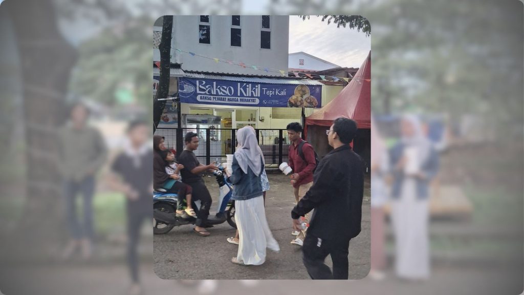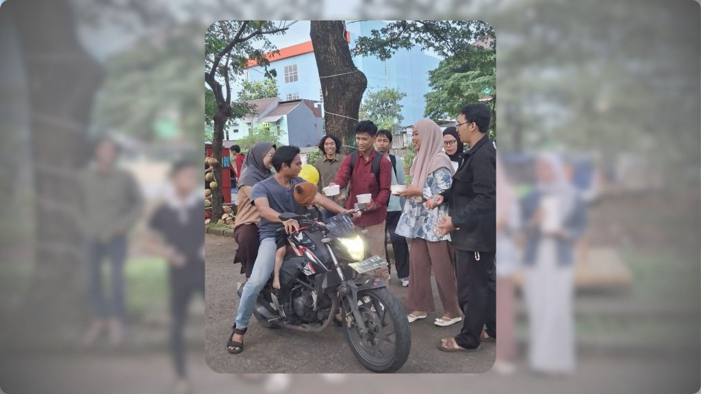 Para sahabat PMII YAI Jakarta turun langsung ke jalan membagikan 100 porsi takjil berupa bakso dan air mineral kepada pengendara motor, ojek online, serta warga yang melintas menjelang waktu berbuka.